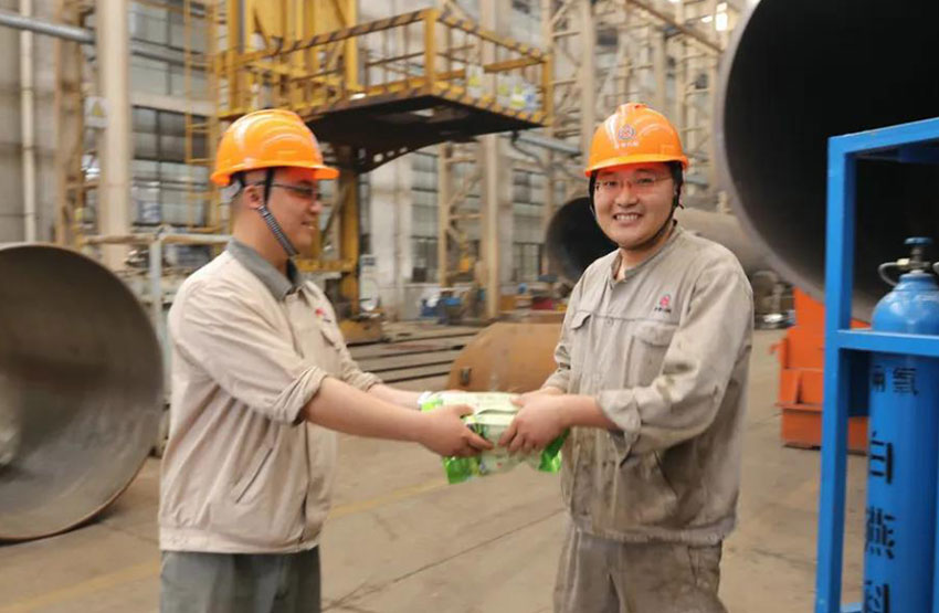 6月15日,機(jī)械公司廠長李飛、綜管部部長蔡萌代表公司領(lǐng)導(dǎo)來到車間一線開展“夏日送清涼”慰問活動(dòng),將一箱箱準(zhǔn)備好的茶葉與防暑藥品送到員工手中,慰問過程中,李廠長和員工們進(jìn)行了輕松愉悅的交談,叮囑大家要?jiǎng)谝萁Y(jié)合,防止高溫中暑,同時(shí)仔細(xì)詢問了他們的生產(chǎn)、生活情況,他們代表公司對(duì)不畏困難、戰(zhàn)高溫、斗酷暑,依舊奮戰(zhàn)在生產(chǎn)一線的員工表示誠摯的問候,對(duì)廣大員工為確保生產(chǎn)任務(wù)和優(yōu)異的產(chǎn)品質(zhì)量所付出的辛勤勞動(dòng)表示衷心的感謝!
