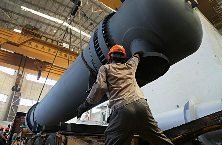 10月8日,山東齊魯石化機(jī)械制造有限公司旋壓車間旋壓制做出直徑2500毫米、壁厚15毫米的鈦304復(fù)合板(12+3)的封頭...