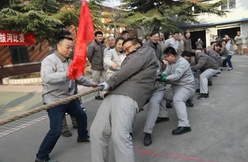 為豐富全體員工的精神文化生活,促進(jìn)員工之間的交流,發(fā)揚(yáng)團(tuán)隊(duì)精神,增強(qiáng)企業(yè)凝聚力 2021年2月26日下午,機(jī)械公司“齊心協(xié)力創(chuàng)佳績,奮進(jìn)之年再出發(fā)” 慶元宵拔河比賽在公司行政辦公樓前舉行。比賽由機(jī)械公司工會主 辦,團(tuán)委協(xié)辦,來自公司各分會及齊機(jī)深冷、齊瑞無損9支代表隊(duì)共140余名選手參加了本次比賽。